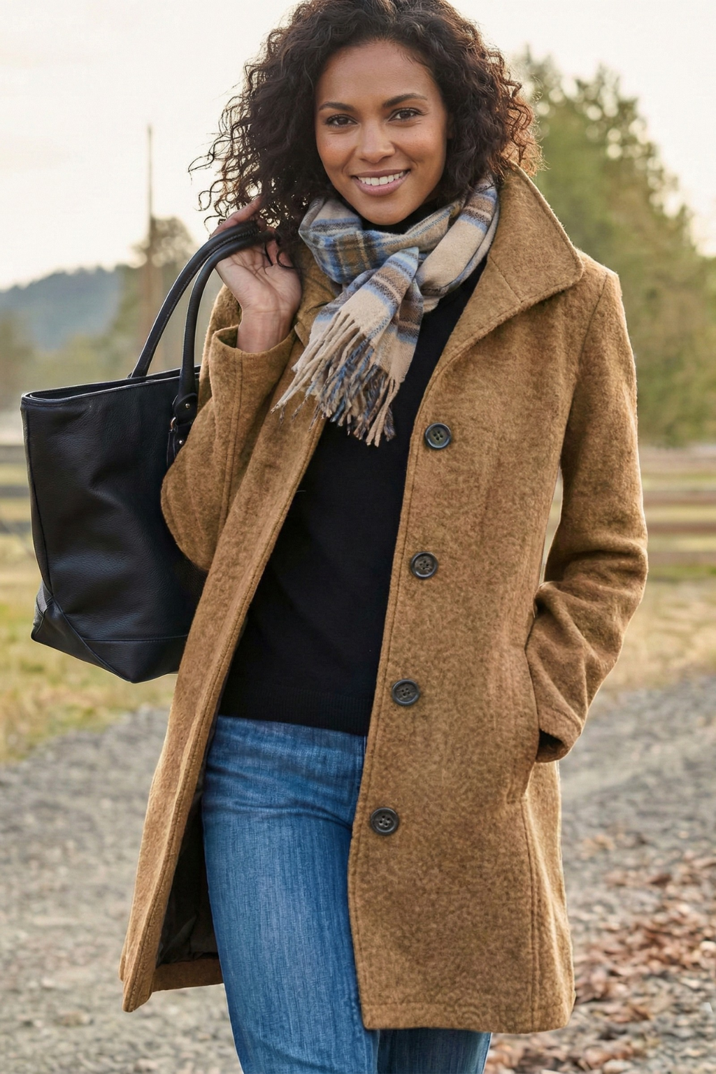 Este abrigo de lana para invierno ofrece una combinación refinada de calidez y estilo clásico. Su silueta estructurada cae con elegancia, mientras que el suave cierre de botones añade un toque atemporal. Perfecto para otoño e invierno, combina fácilmente con conjuntos casuales o más arreglados. Una excelente opción para mantener la calidez mientras conservas un look pulido y versátil.